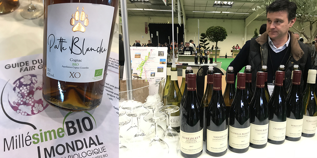 Puis j’ai pris la direction de l’association « Le vin de mes amis » très convoitée où je croise l’équipe bordelaise des caves CashVins faisant leurs emplettes. Je sélectionne quelques superbes réalisations dans ce vaste ensemble très bien fourni, comme le catalan Celler Còsmic Vinyaters de la région Empordà avec sa ligne de vins très aromatiques créée par Salvador Barrabeig. Les rouges fameux du Mas Haut-Buis en Terrasses du Larzac servis délicatement en carafe par une charmante jeune femme, agrémentent le parcours pour ricocher sur ceux bien connus d’Antoine Arena en Corse de la région Patrimonio. Un Gevrey Chambertin de Jerôme Galeyrand, un rouge de Gramenon « Poignée de raisin » (grenache vieilles vignes) signé Michèle Aubéry et la cuvée « Comète » (muscat petits grains, viognier) du Clos des Grillons par Nicolas Renaud en Côtes du Rhône, les Chablis subtils à l’effigie de loup de Thomas Pico, les cuvées modernes et stylées du Clos Baquey et Chante-Coucou en Marmandais d’Elian Da Ros etc en continuant sur la grande soirée festive au Domaine de Verchant, autant de vins purs et sincères qui m’ont permis d’apprécier le monde des vins BIO depuis longtemps par leur grande évolution qualitative.