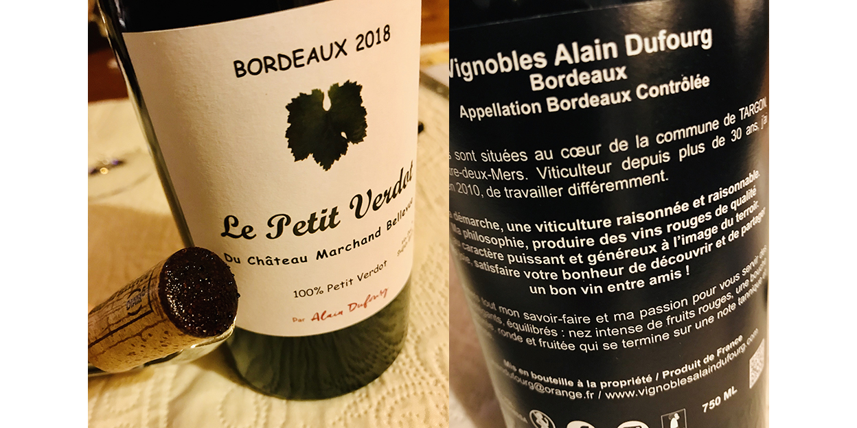 Château Marchand Bellevue « Le Petit Verdot » A.O.C Bordeaux – 2018 (Bio nature)