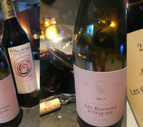 Les vins modernes du Domaine Calmel & Joseph avec les cuvées Le Penchant (blanc – grenache roussane) délicieuse de pêche poire mentholées, puis Les Arques (rouge – syrah, carignan, grenache, mourvèdre) en Minervois à la bouche pleine mixée de fruits noirs, de figue anisée, d’olive chocolatée avec une finale soyeuse.