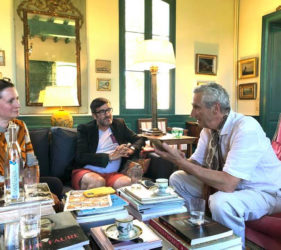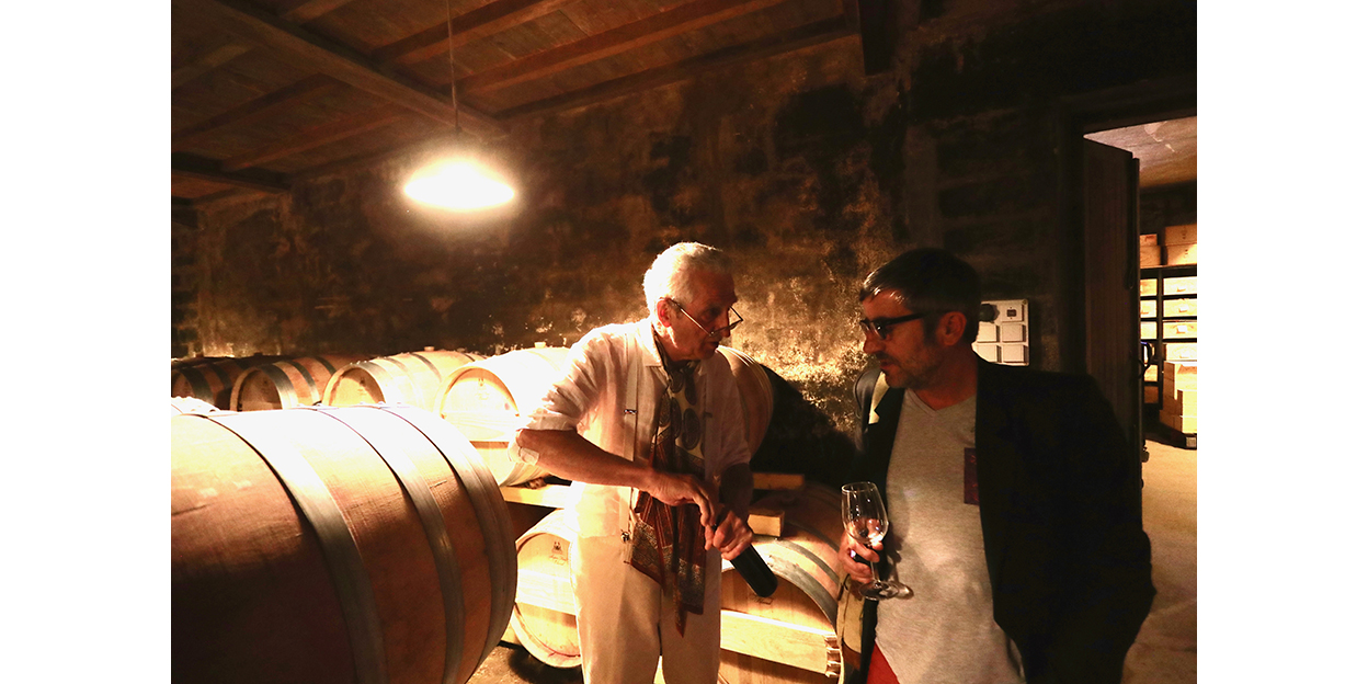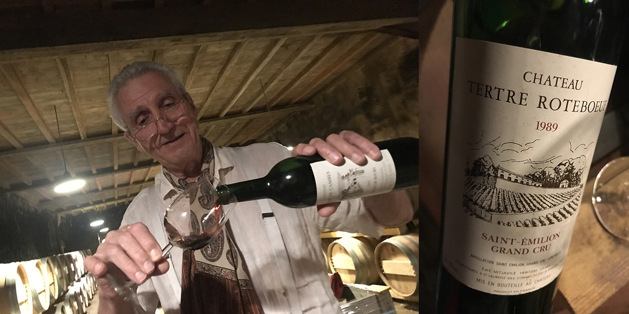 Nous voilà en milieu d’après-midi pour 2 bonnes heures, au Château Tertre-Roteboeuf Saint-Emilion Grand Cru sur le sommet de la commune en compagnie de la journaliste allemande Birte Jantzen, et tous reçus par le maestro François Mitjavile au salon de sa demeure somptueuse d’authenticité et de culture. Ce dernier nous commente avec fidèlité ses créations bachiques pour se mettre en appétence avant de descendre dans le cave d’élevage du millésime en question.