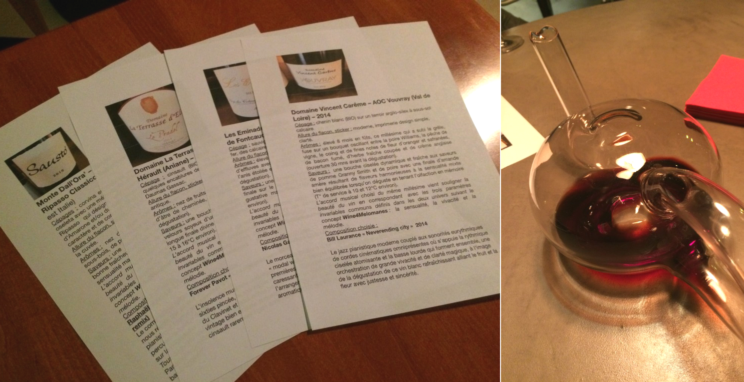 L’accord musical choisi du même millésime vient souligner la beauté du vin en correspondant avec les trois paramètres invariables communs définis dans les deux univers suivant le concept Wine4Melomanes : la sensualité, la vivacité et la mélodie.Ces paramètres résultent de l’équation bio dynamique de la géologie du terroir, des cépages s’y cultivant et du savoir-faire du vigneron pour révéler l’alchimie des arômes et des saveurs justement combinés.