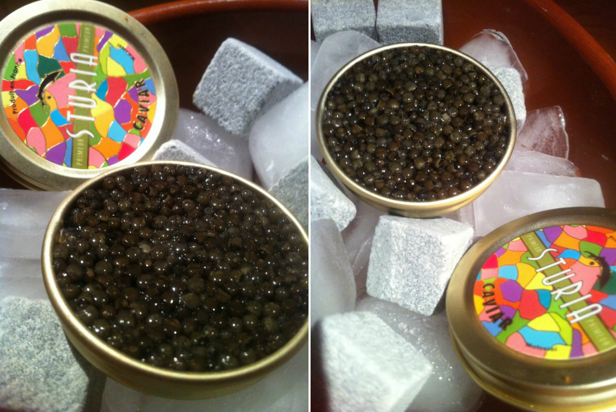 Caviar « Primeur » : grain brillant, texture croquante puis crémeuse en fin de bouche, goût délicat de noisette fraîche, caviar jeune d’affinage de 4 semaines.