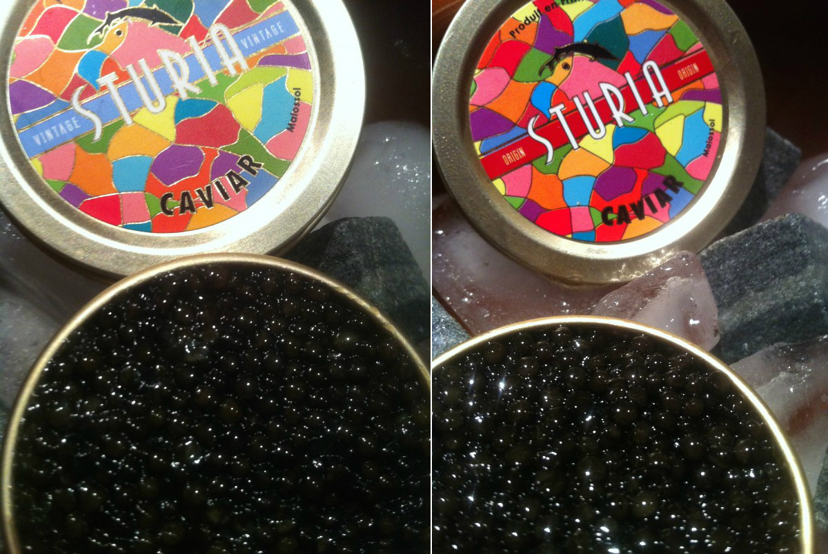 Caviar « Primeur » : grain brillant, texture croquante, ferme puis crémeuse en fin de bouche, goût délicat de noisette fraîche, persistance iodée, caviar jeune d’affinage de 4 semaines.